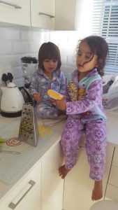 I try and make them feel “at home” in the kitchen as far as possible and nowadays Aidan even grabs a chair and takes out his own yoghurt out of the fridge.