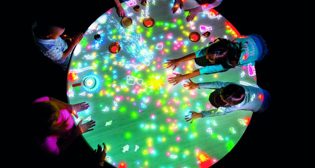 Children will also encounter a sketch town where they can draw a car and see it drive around in a town, a light-ball orchestra filled with large balls that change colour and music as they touch it, a colourful game of hopscotch, a town they build and digitally connect, as well as a table where little people come alive.